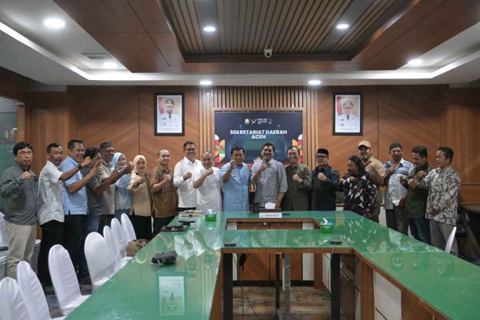 Plt Sekda Aceh Alhudri menerima kunjungan silaturahmi perwakilan masyarakat yang tinggal di sekitar Taman Nasional Gunung Leuseur (TNGL), di Kantor Gubernur Aceh, Jumat (7/3/2025).