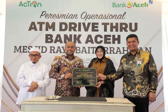 PT Bank Aceh Syariah meresmikan fasilitas ATM Drive Thru terbaru yang berlokasi di kawasan Taman Kota Banda Aceh. Peresmian yang berlangsung Senin (2/3/2026) dihadiri Wali Kta Banda Aceh, Illiza Saaduddin Djamal, dan jajaran direksi Bank Aceh.