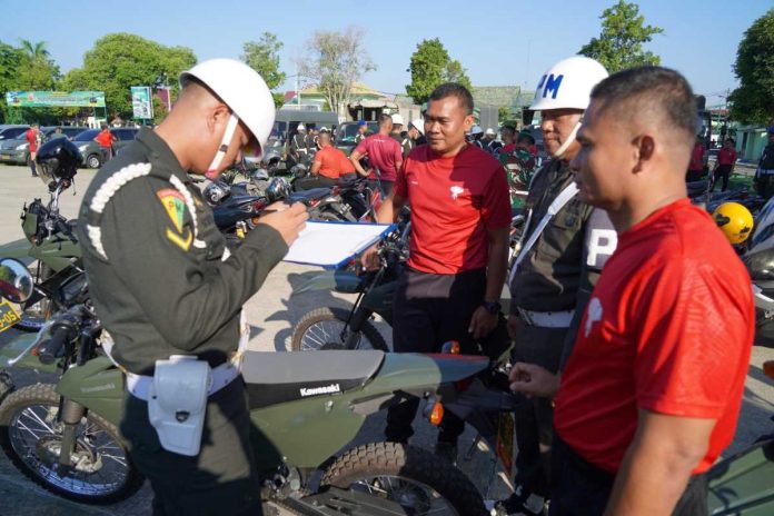 “Semua diperiksa, baik itu kelengkapan fisik kendaraan, surat menyurat STNK, SIM dan KTA, termasuk yang lebih penting lagi penutup kepala, menggunakan helm standar nasional Indonesia yang sesuai aturan,” ujar Danrem.