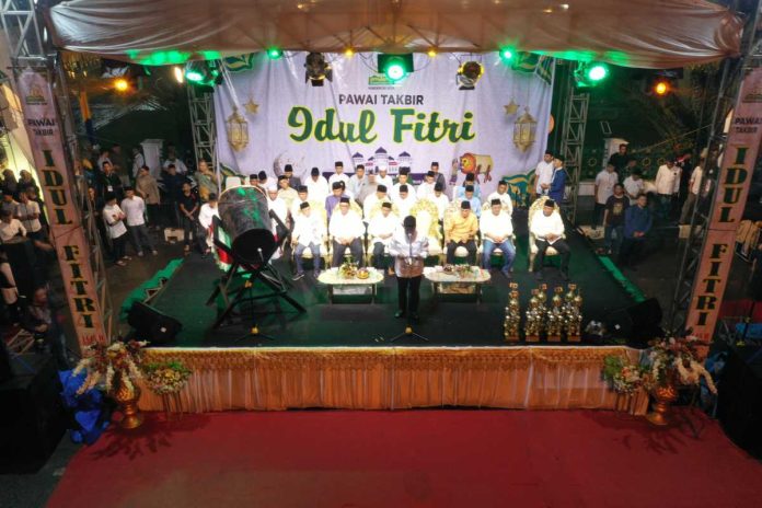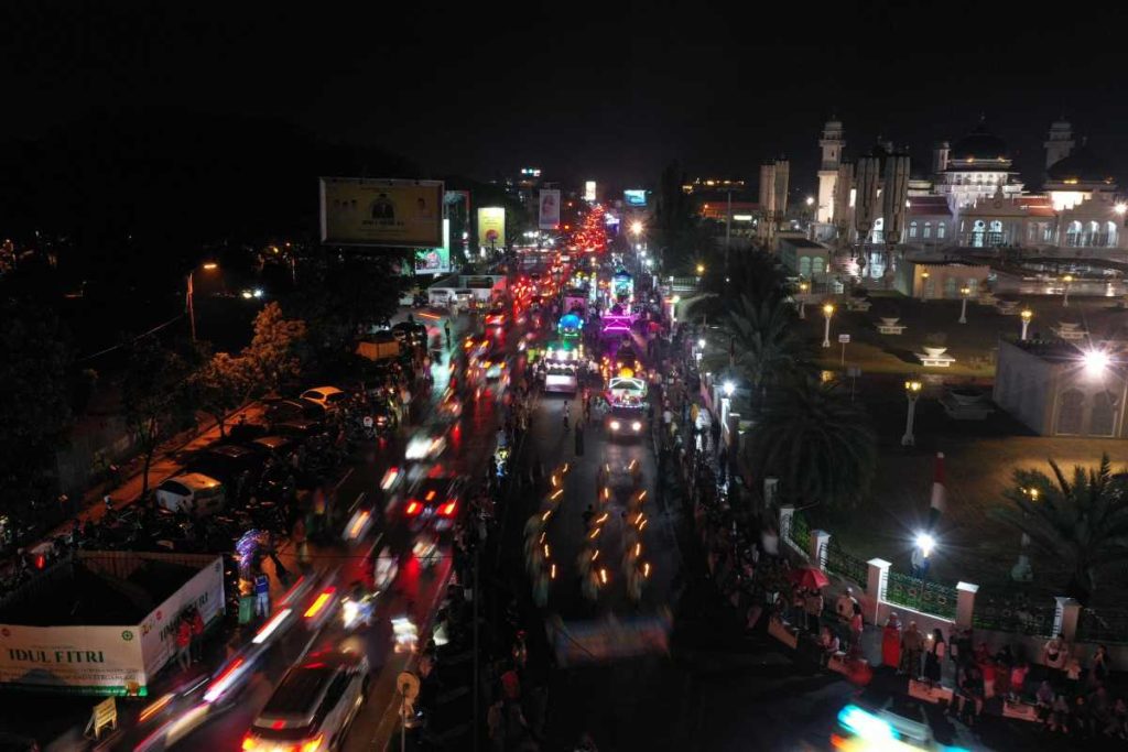 Pawai Takbir di Banda Aceh berlangsung meriah kendati gerimis mengguyur kota sejak siang hari. Penjabat (Pj) Gubernur Aceh Bustami Hamzah bersama Forkopimda Aceh melepas peserta Pawai Takbir Idulfitri 1445 Hijriah, Selasa (9/4/2024) malam.