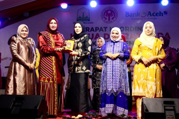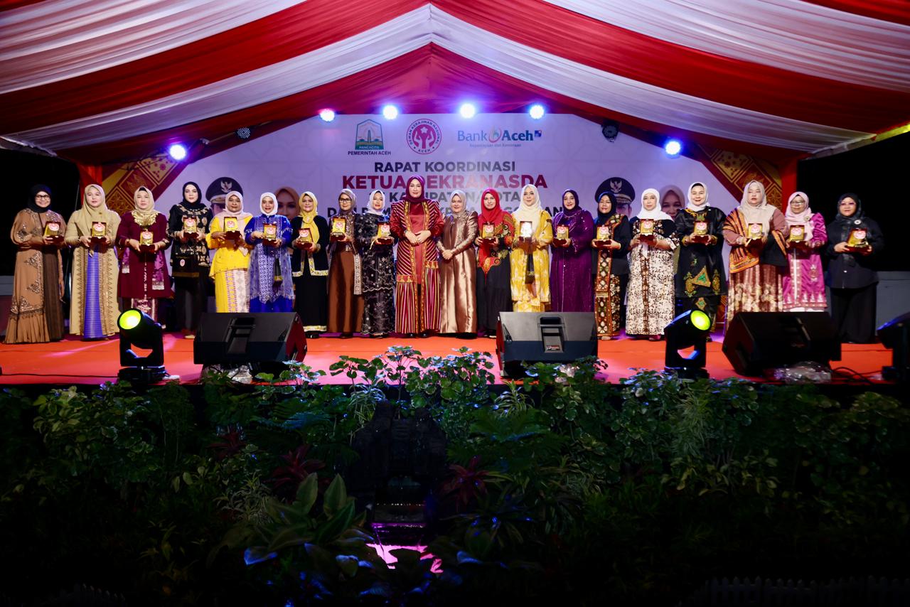 Pernyataan itu disampaikan saat malam penutupan Rapat Koordinasi Dekranasda se-Aceh dan Pameran Kriya Unggulan, yang berlangsung di UMKM Center Bank Aceh, Minggu (9/11/2025) malam.