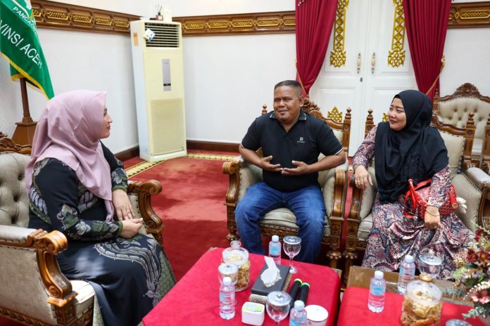 Ketua TP PKK Aceh Marlina Muzakir, menerima kunjungan silaturrahmi Bang Ucok di Meuligoe Gubernur Aceh. Pria bernama lengkap Jamaluddin (56) datang ke Meuligoe bersama sang istri Nuranisa, Senin (30/3/2026).