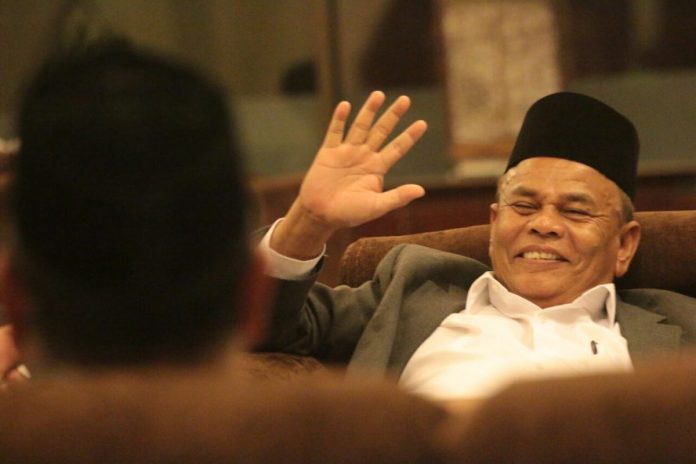 Saat mengawali sambutannya, Mualem menyapa Apa Karya yang hadir dalam acara itu, dan berharap tetap sehat dan gagah seperti anak muda.