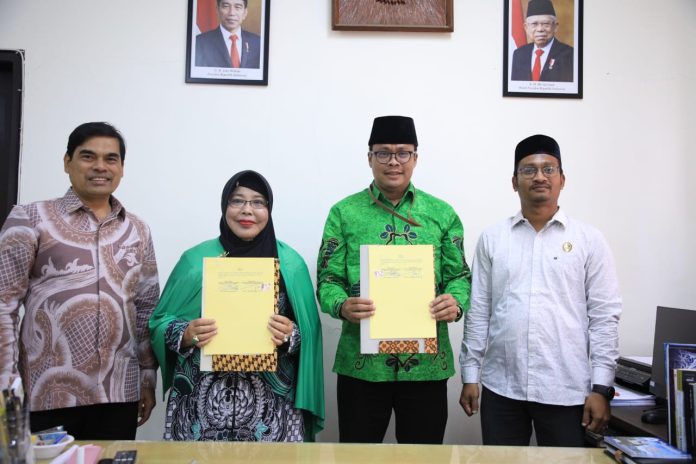 Turut hadir menyaksikan penandatanganan perjanjian kerja sama, Rektor UIN Ar-Raniry Aceh Prof Mujiburrahman, Hendi Diyanto dan Furqon Sekretaris LD PWNU Aceh.