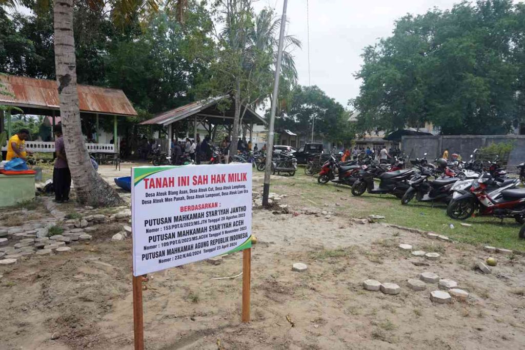 Kata Syahrul, warga kemudian menggugat kepemilikan tanah tersebut sejak tahun 2022 lalu ke MS Jantho. “Jadi termohon sudah menguasainya secara pribadi dengan membuat akta hibah dengan mengurus serangkaian surat menyurat yang seolah-olah itu milik pribadi. Masyarakat kemudian menggugat, saya dan kawan-kawan yang mendampingi,” ujar Syahrul Rizal.