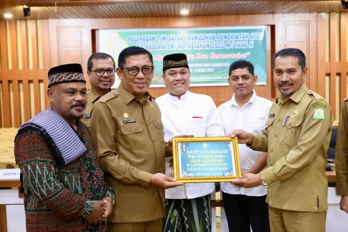 Pelaksana Tugas Sekda Aceh, Alhudri mewakili Wakil Gubernur Aceh, secara resmi melepas keberangkatan Tim Safari Ramadan 1446 H/2025 M dalam sebuah acara yang digelar di Kantor Gubernur Aceh, Senin (10/3).